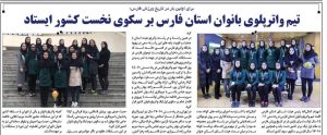 شهرام کمال زاده رئیس هیات شنای استان فارس با اعلام این خبر افزود: تیم واترپلو بانوان استان فارس در رده سنی ۱۱-۱۴ سال توانست برای اولین بار در تاریخ ورزش فارس به مقام اول لیگ برتر کشور دست یابد و همچنین تیم ۱۵-۱۷ سال فارس بر سکوی سوم کشور ایستاد.